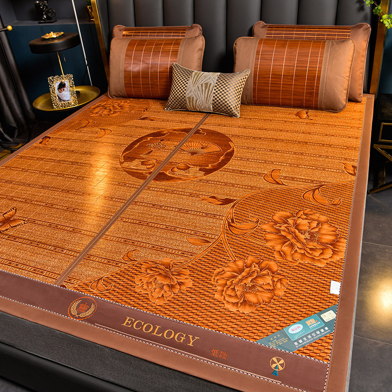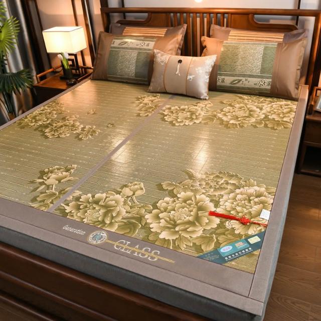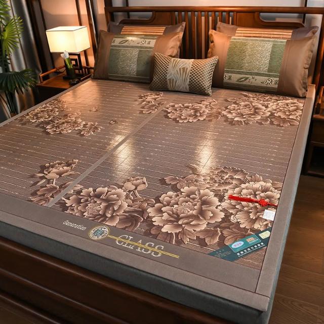 幕咖 2026新款雙面親膚竹席 涼席 藤席 竹席 空調席 學生席 冰絲鏡面木紋碳化 fd9