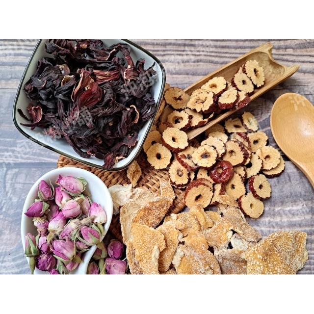 語樂《玫瑰洛神花茶》 接單後現包 100%純天然 無糖無其他添加物!! 即沖即飲~玫瑰 洛神花 陳皮 紅棗~沖泡穀粉小舖
