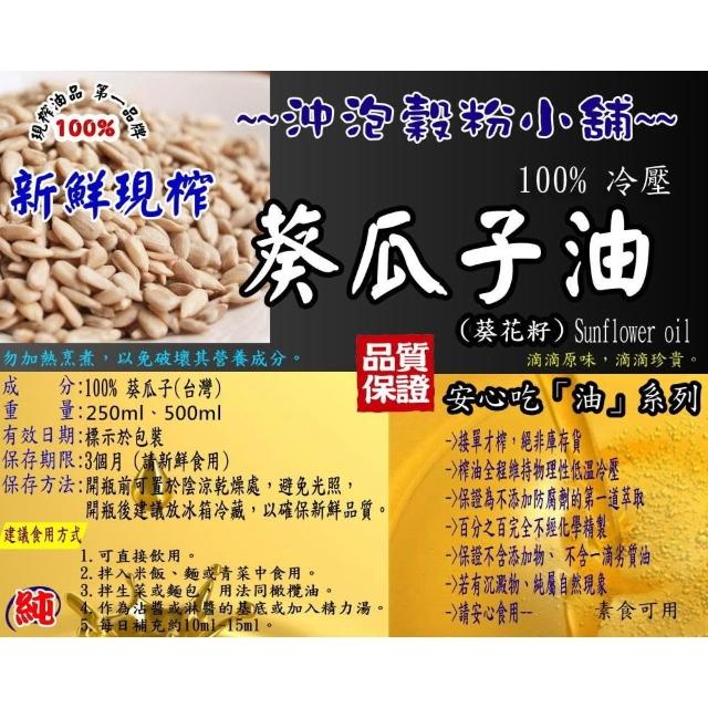 語樂《葵瓜子油》100%純天然無添加 接單後冷壓現榨 食用油 葵花油 葵花籽油~沖泡穀粉小舖