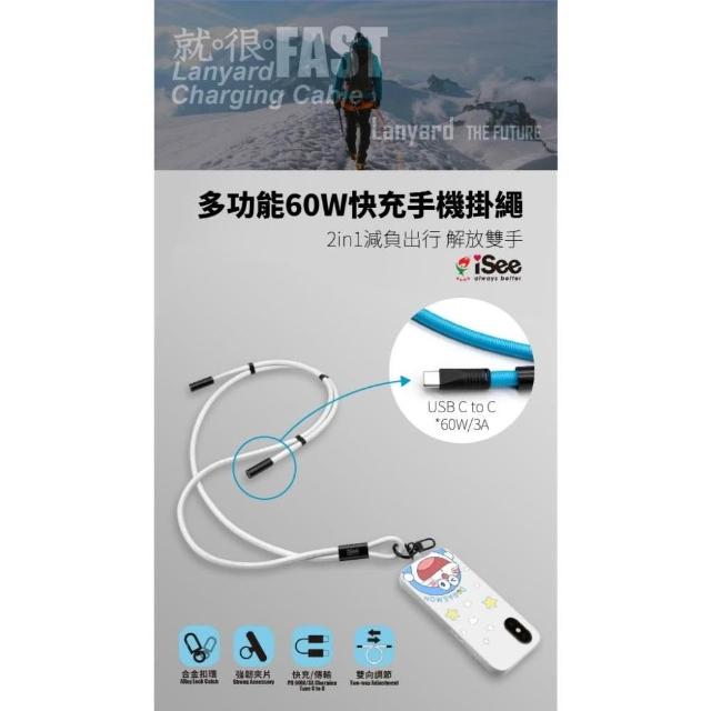 iSeePD快充掛繩 USB-C TO C 2in1 60W 1.5M 強韌夾片 支援資料傳輸 (IC-CC236)