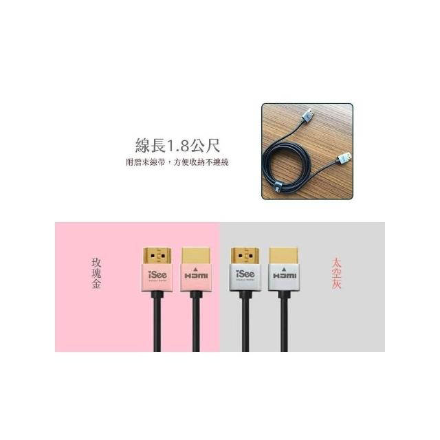 iSeeHDMI 影音傳輸線1.8m 2.0 鋁合金 玫瑰金 (IS-HD2020) 支援3D影像 4K超高解析輸出