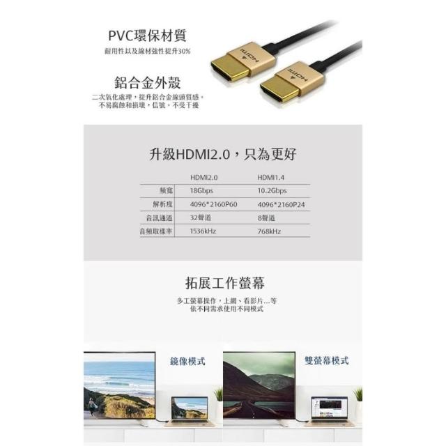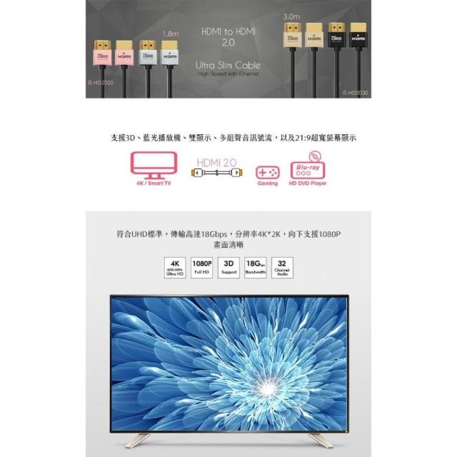 iSeeHDMI 影音傳輸線1.8m 2.0 鋁合金 玫瑰金 (IS-HD2020) 支援3D影像 4K超高解析輸出