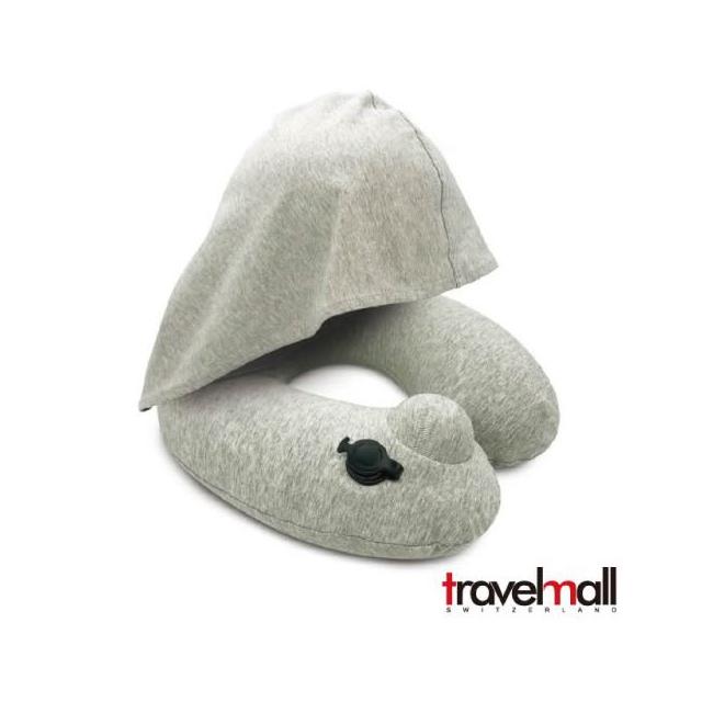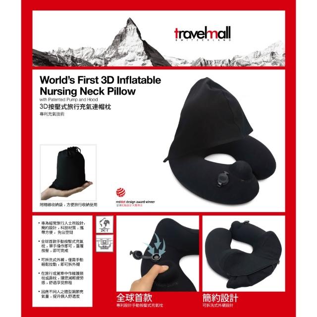 Travelmall專利3D按壓充氣連帽頸枕 輕巧便攜 可拆洗外襯 紅點設計獎 出國旅行 搭飛機 搭長途車 午休必備