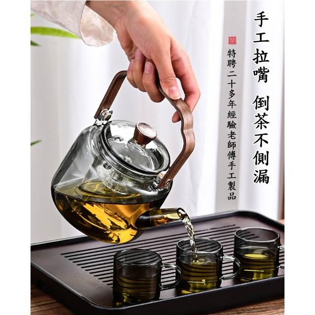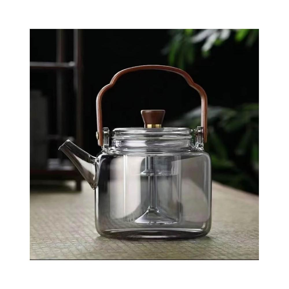 木把蒸煮玻璃茶壺 泡茶壺 煮茶壺 家用蒸煮茶壺 高硼硅泡茶壺 玻璃耐高溫 提樑壺 單壺