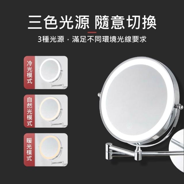 放大化妝鏡 8英寸壁掛雙面鏡 三色調光 浴室鏡子 伸縮化妝鏡 雙面 伸縮鏡 浴室鏡子 平面/放大