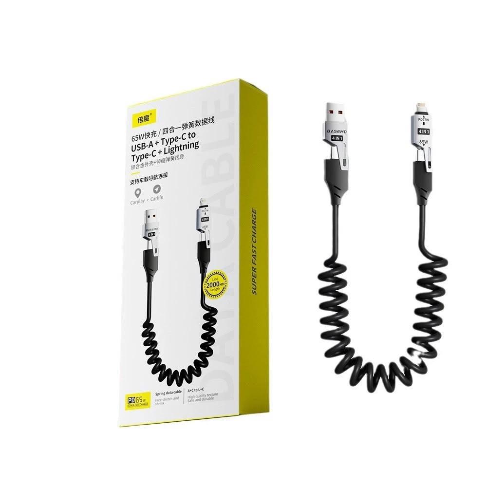 倍魔 Basemo 65W四合一 彈簧數據線 二拖二 IPHONE 快充線 PD