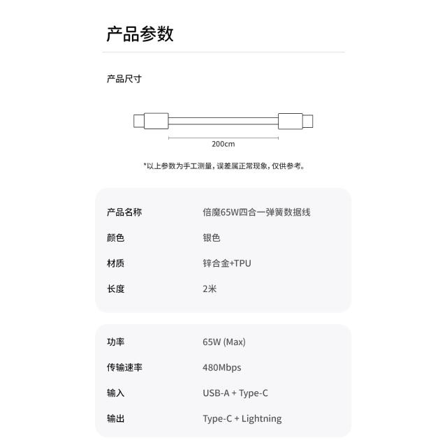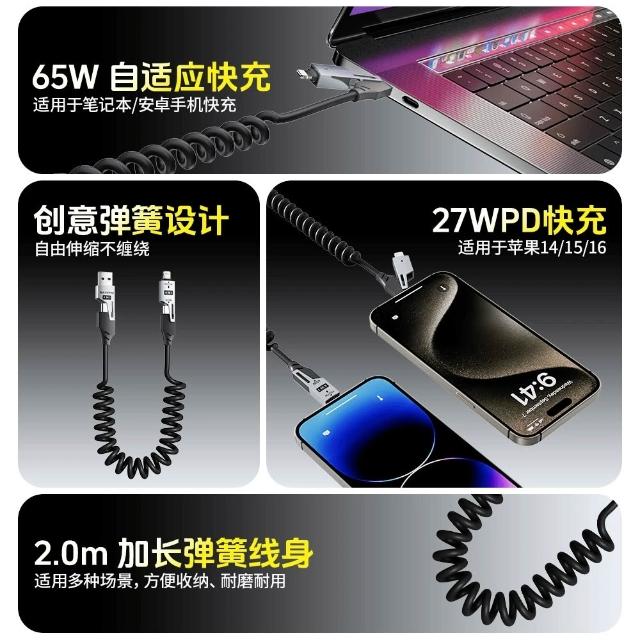 倍魔 Basemo 65W四合一 彈簧數據線 二拖二 IPHONE 快充線 PD