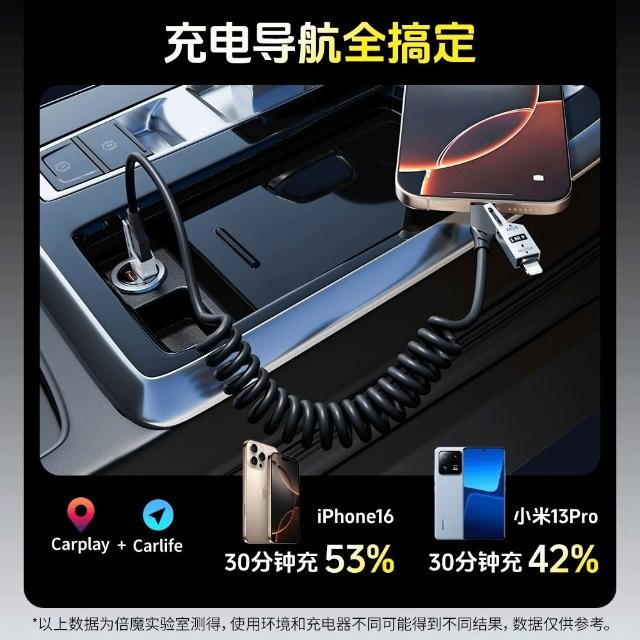 倍魔 Basemo 65W四合一 彈簧數據線 二拖二 IPHONE 快充線 PD