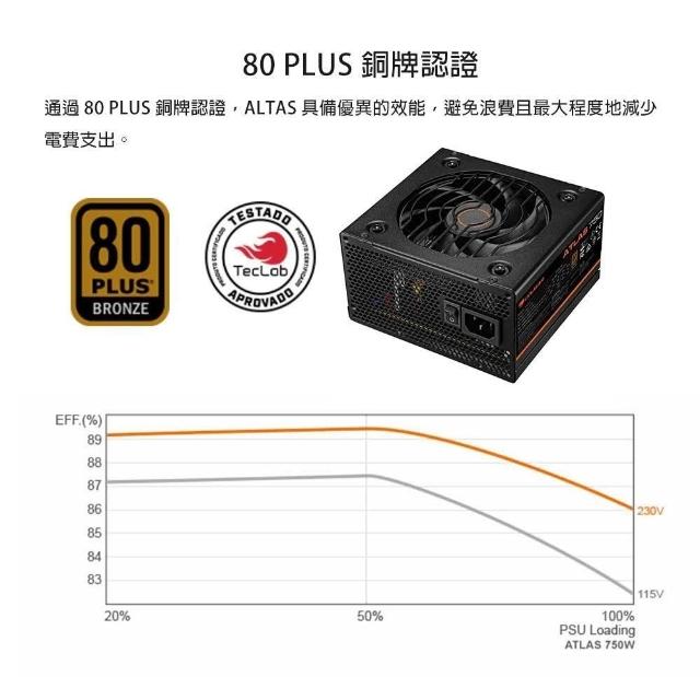 COUGAR 美洲獅ATLAS 銅牌 750W 電源供應器(五年保固)