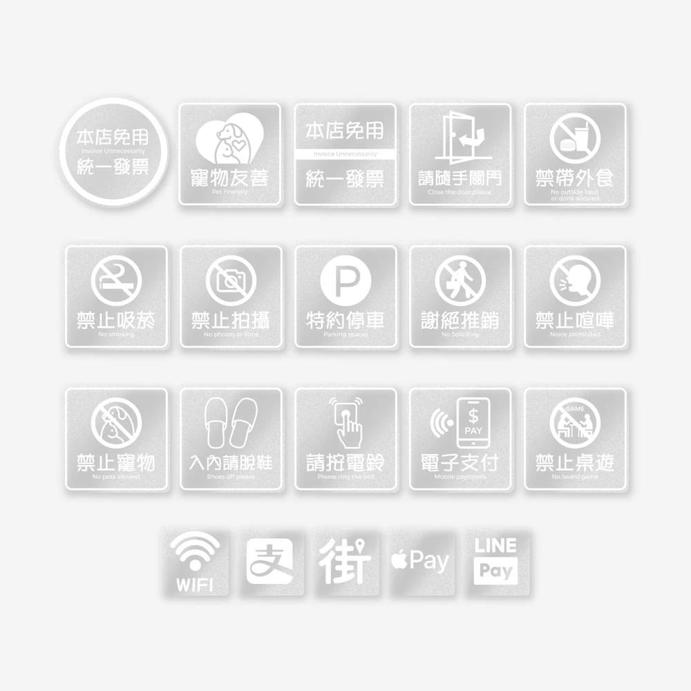 商業用告示貼【10X10貼紙】ER0512▸警示標語▸商用標示貼▸電子支付▸禁帶外食▸免用發票貼紙▸特約停車