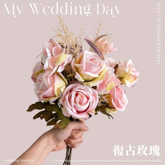 仿真花束【拍照道具】WD0874▸玫瑰花▸居家擺飾▸復古玫瑰▸仿真繡球花▸仿真玫瑰▸分束捧花▸婚禮布置▸仿真小雛菊