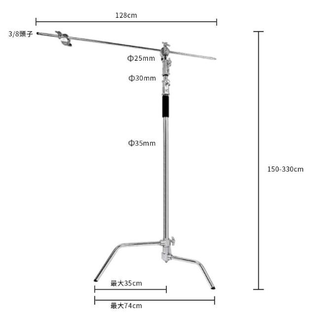 C型燈架 C-STAND【不銹鋼燈架】DCE0005▸附橫杆▸魔術腿攝影支架▸橫桿斜臂支架