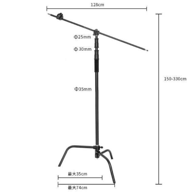 C型燈架 C-STAND【不銹鋼燈架】DCE0005▸附橫杆▸魔術腿攝影支架▸橫桿斜臂支架