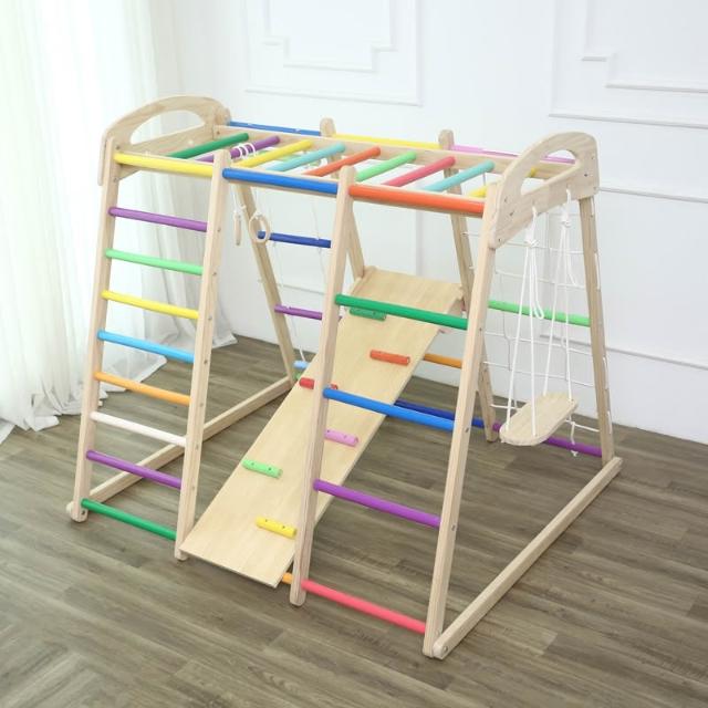 兒童實木攀爬架室內寶寶木質滑梯秋千攀岩組合家用小型鍛煉設備