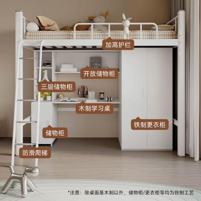 上床下桌組合床學校宿舍成人加厚鐵藝鋼制家用公寓上床下櫃高架床