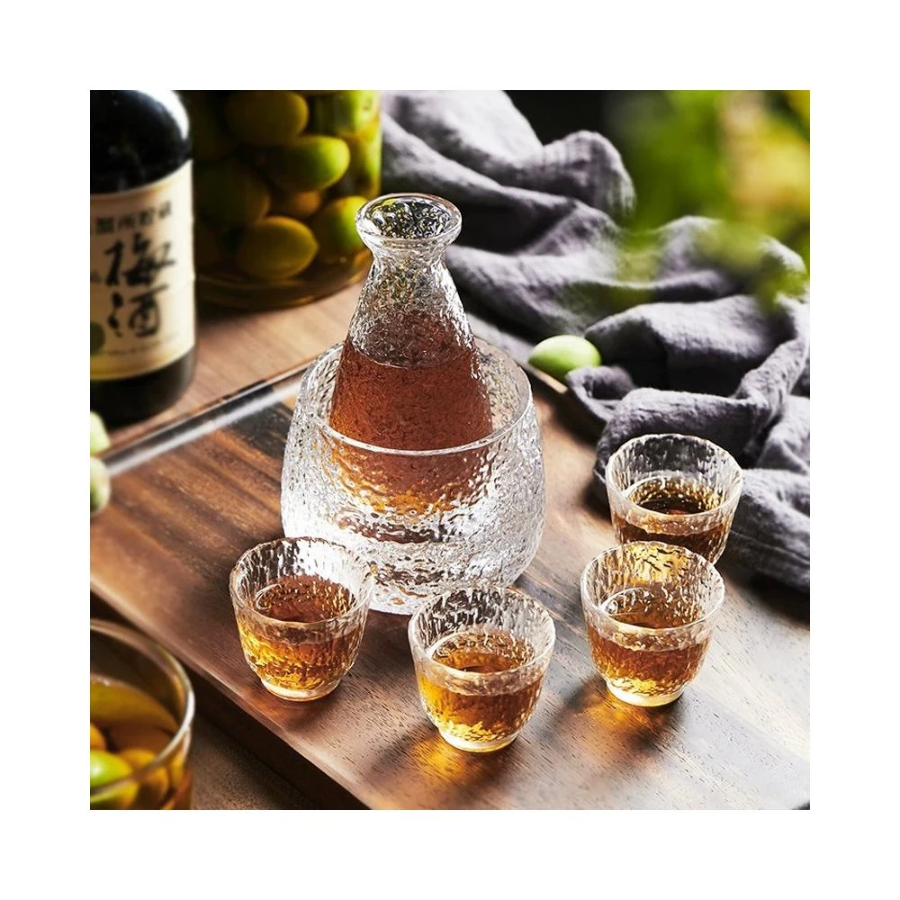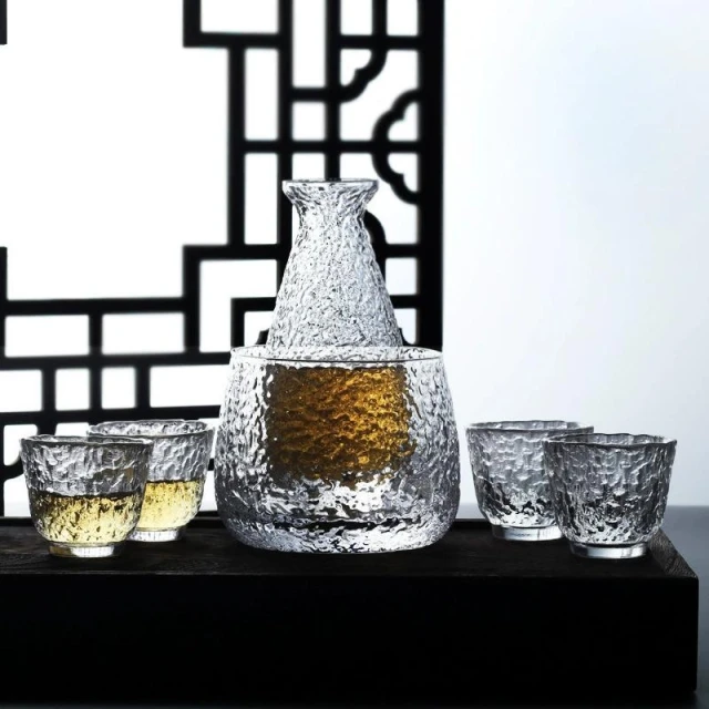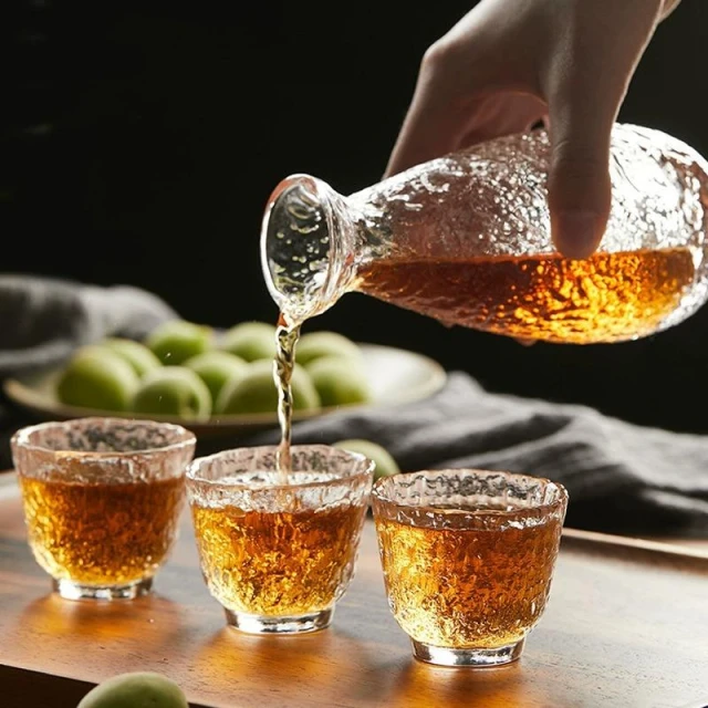 日式錘紋玻璃清酒壺套裝高顏值白酒果酒酒具酒杯分酒器酒缸溫酒器