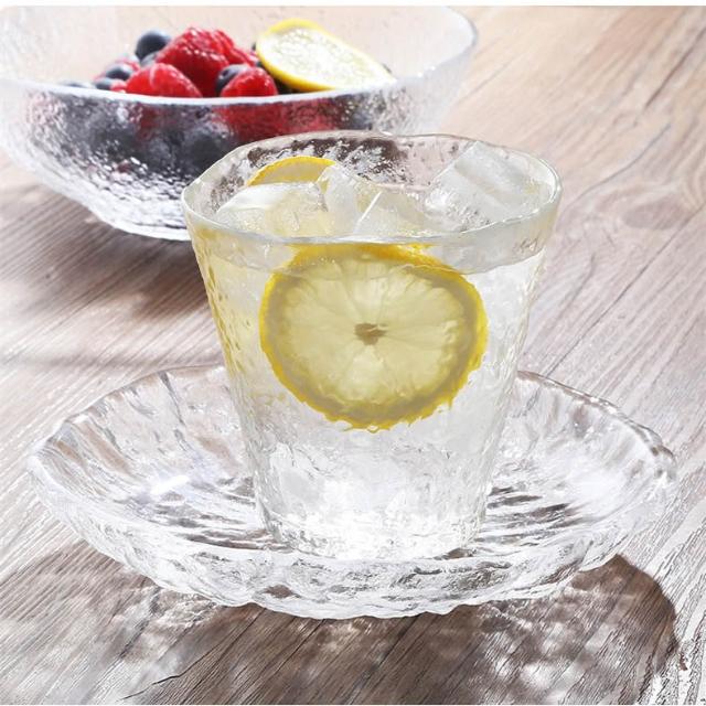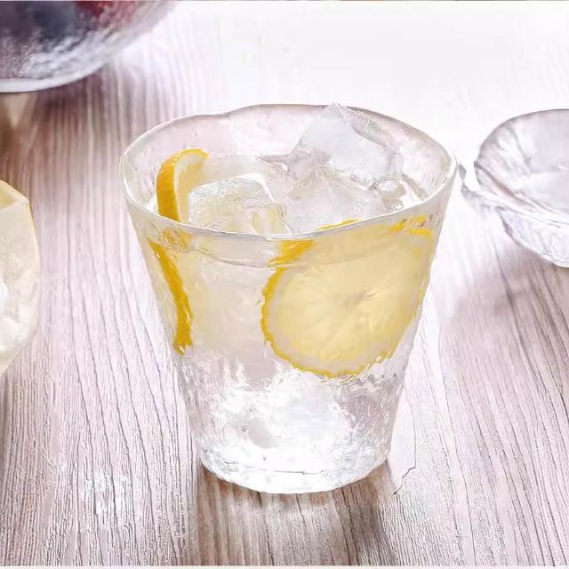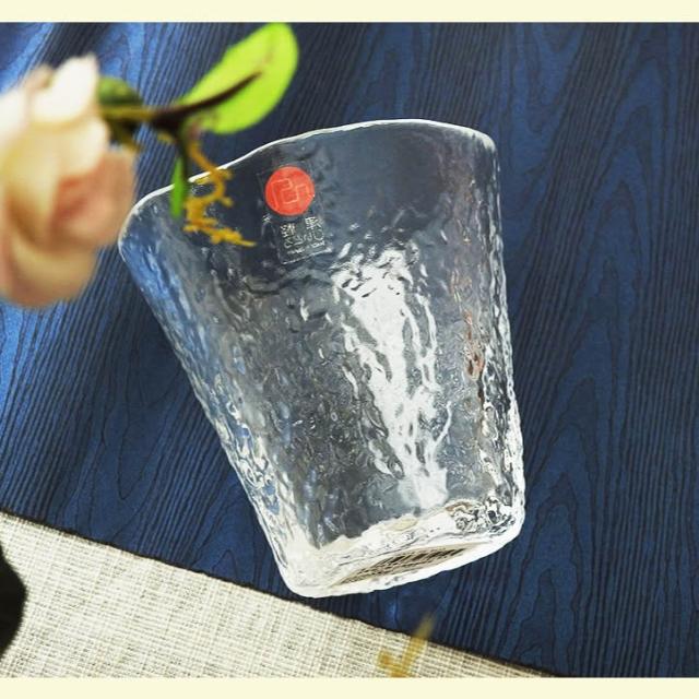 日本Aderia津輕初雪玻璃杯日式錘目紋酒杯家用大茶杯冷酒杯