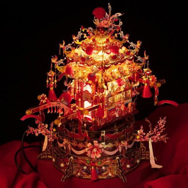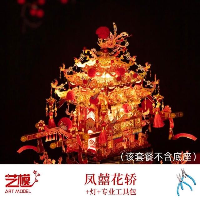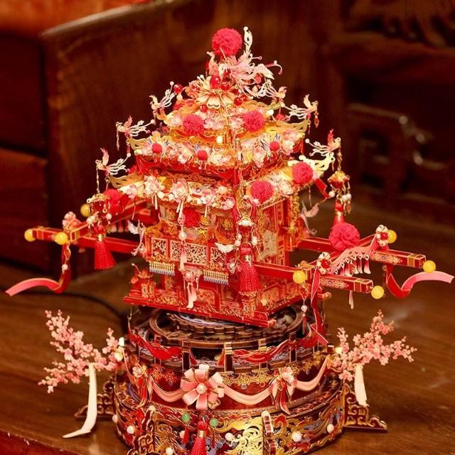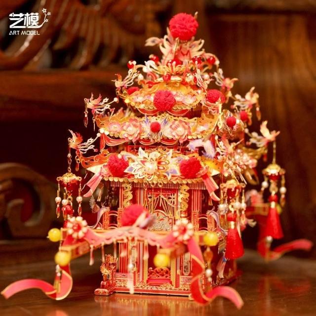 藝模鳳囍花轎3D立體金屬拼圖手工diy結婚送禮物新婚創意擺件裝飾