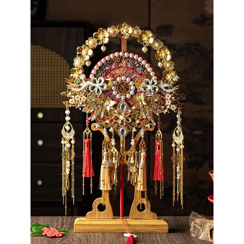江晚吟新娘團扇手工紅色材料包雙面喜扇出嫁中式秀禾服結婚成品子