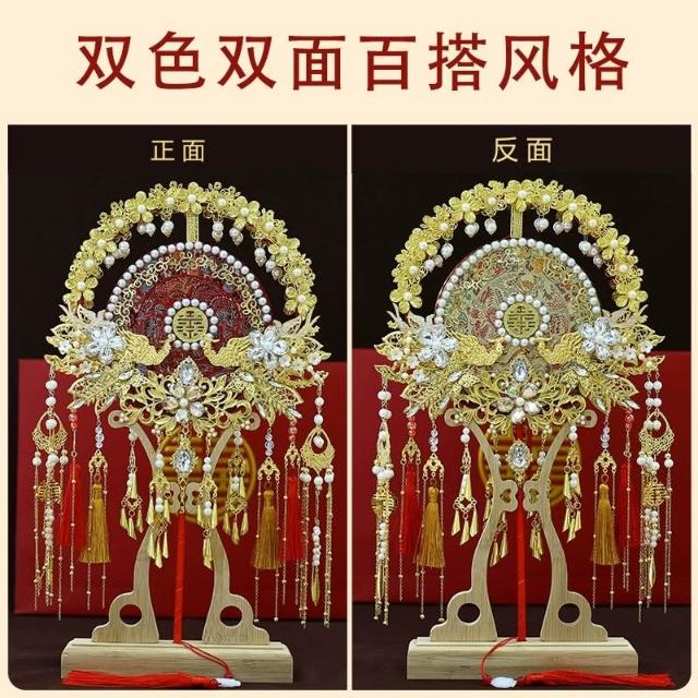江晚吟新娘團扇手工紅色材料包雙面喜扇出嫁中式秀禾服結婚成品子