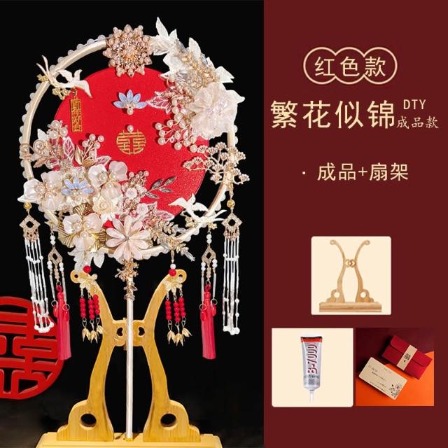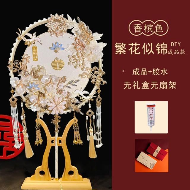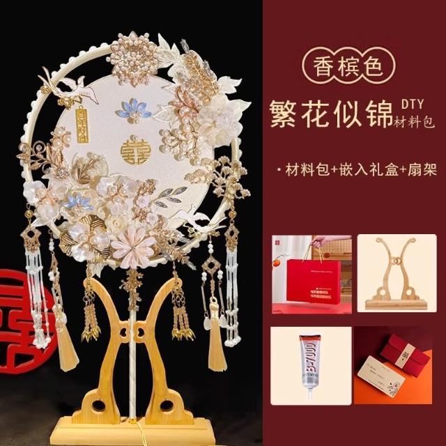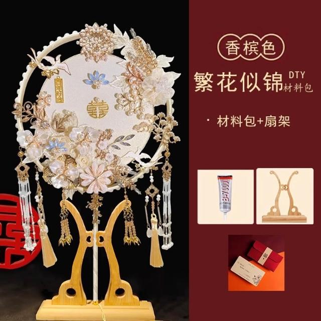 團扇新娘結婚diy材料包中式喜扇香檳藍色秀禾服婚禮手工遮面扇子