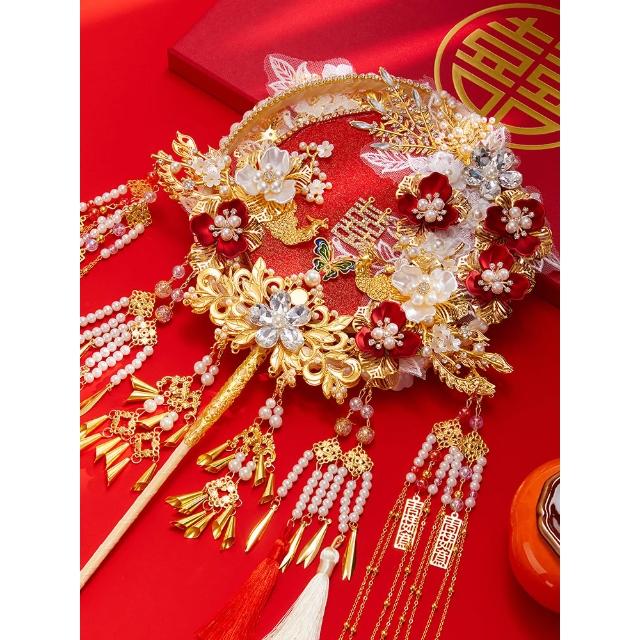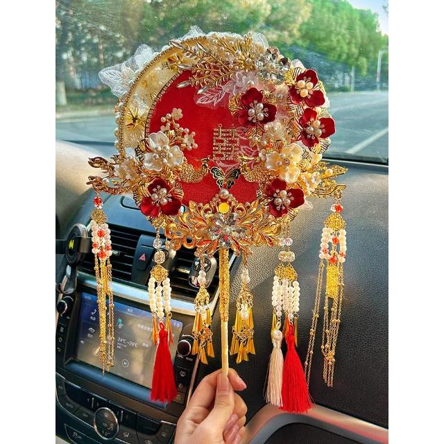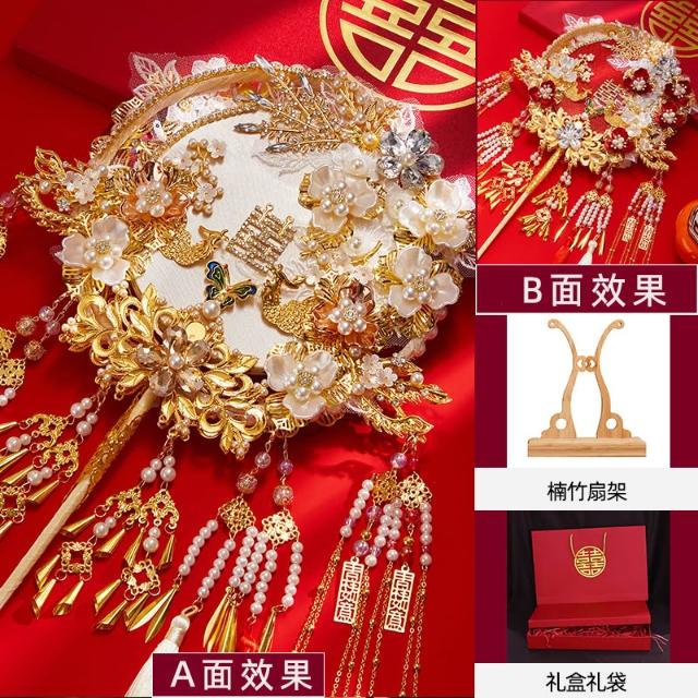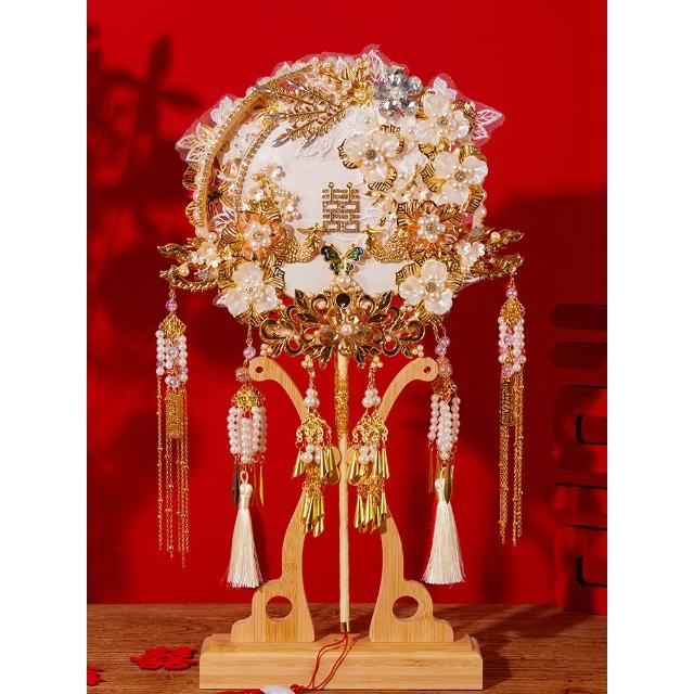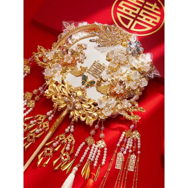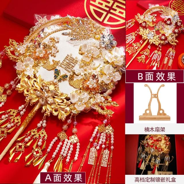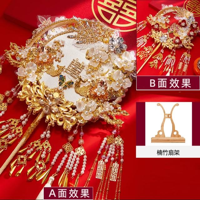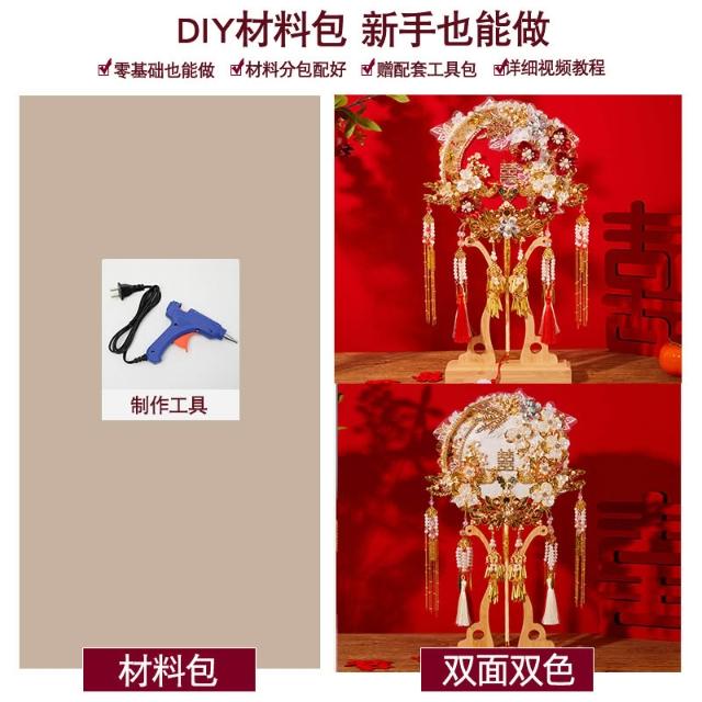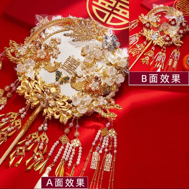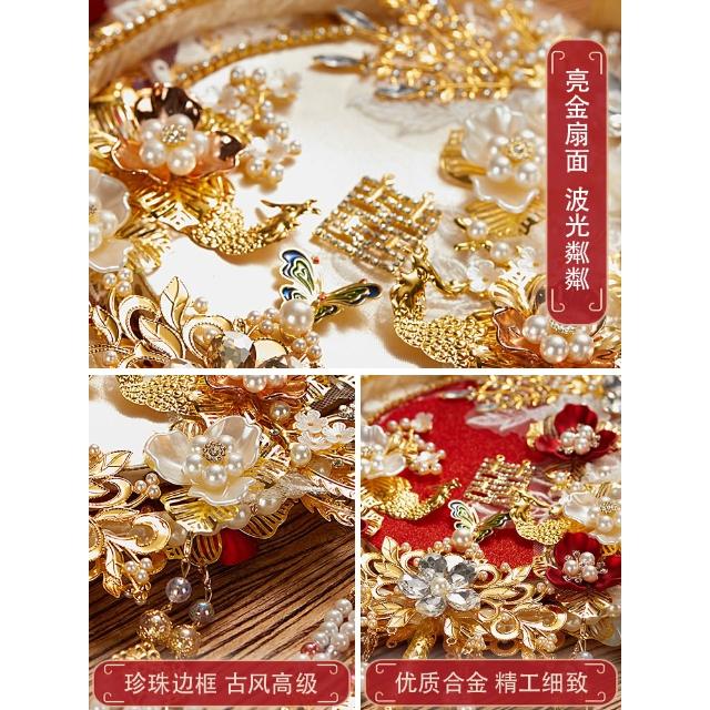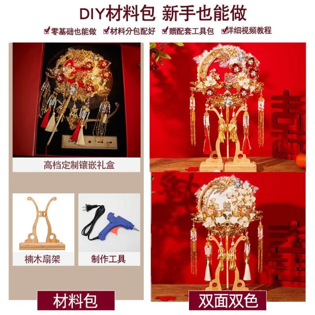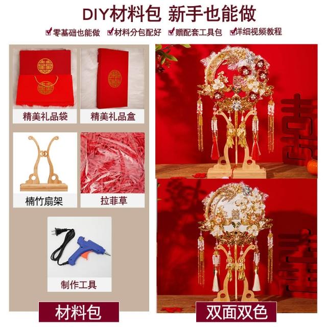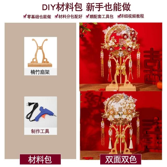 雙面雙色重工團扇新娘結婚出嫁diy材料包高級感中式婚禮秀禾喜扇