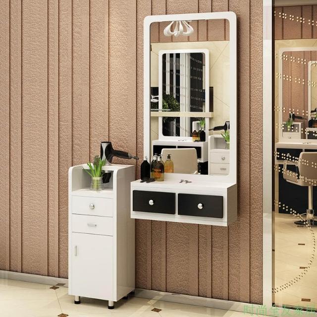 新品上市美髮店鏡子理髮店鏡臺單雙面髮廊鏡子帶櫃子美容美新北黃
