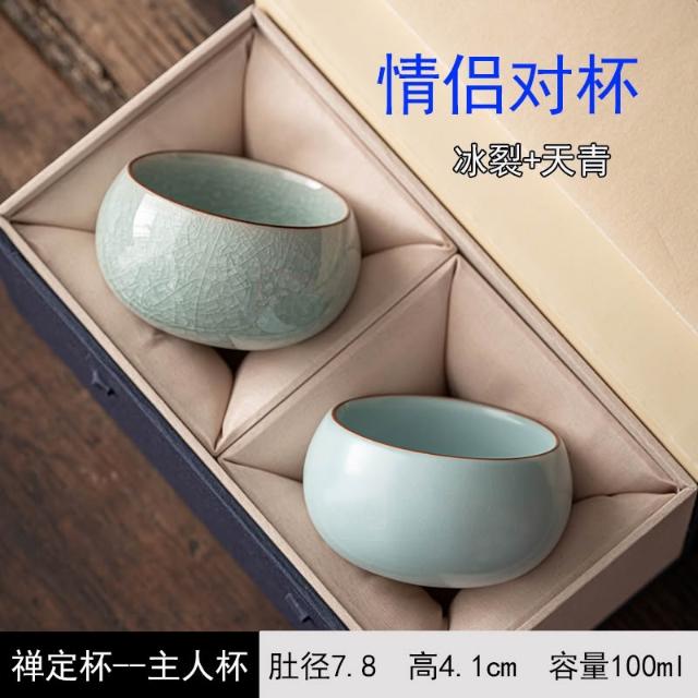 汝窯冰裂紋主人茶杯主人杯高檔個人專用陶瓷冰花茶盞茶碗品杯茶具