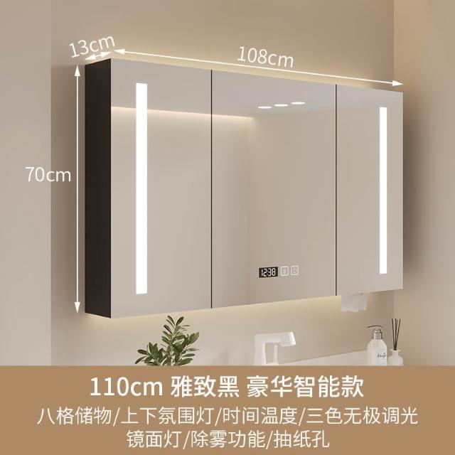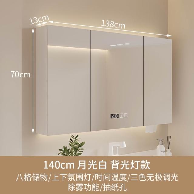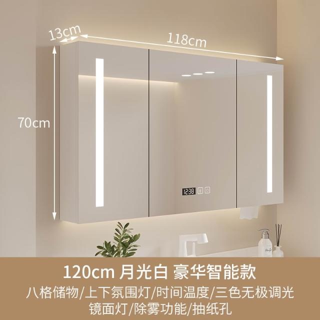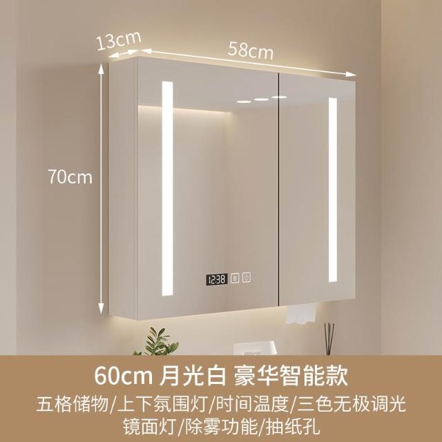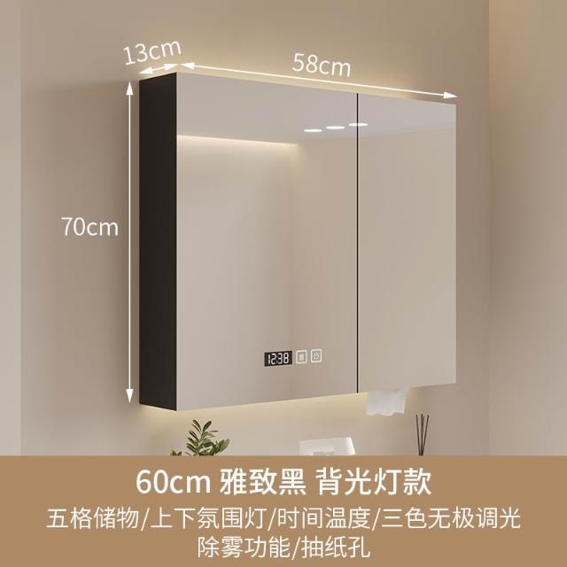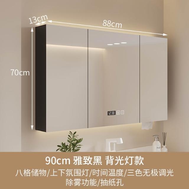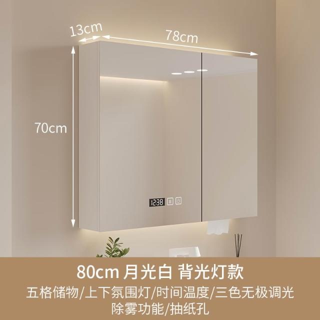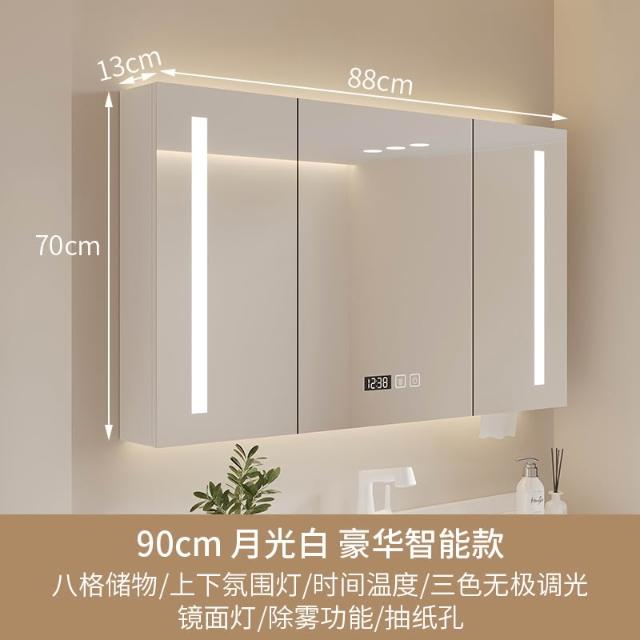 實木智能除霧浴室鏡櫃觸摸屏衛生間單獨掛牆式鏡子洗手間收納儲物