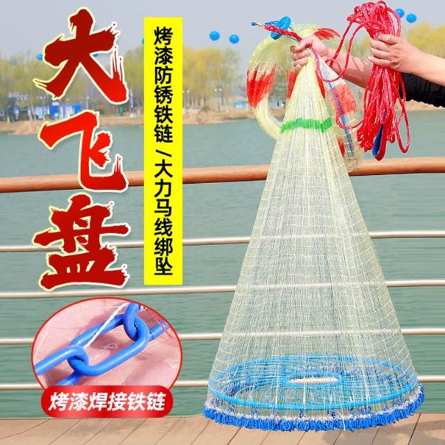 黃金軟絲大飛盤加粗撒網手拋網漁網捕魚網焊接鐵鏈網紅撒網易拋網