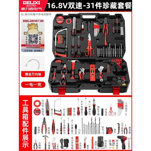 工具箱家用套裝多功能手電筒鑽電工維修五金工具大全萬能全套