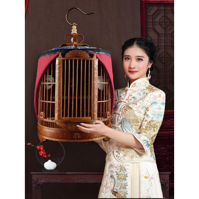 雕刻畫眉鳥籠竹精品高端手工雕花豪華高級大號八哥鷯哥竹制鳥籠子