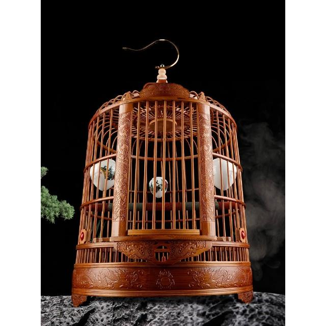雕刻畫眉鳥籠竹精品高端手工雕花豪華高級大號八哥鷯哥竹制鳥籠子