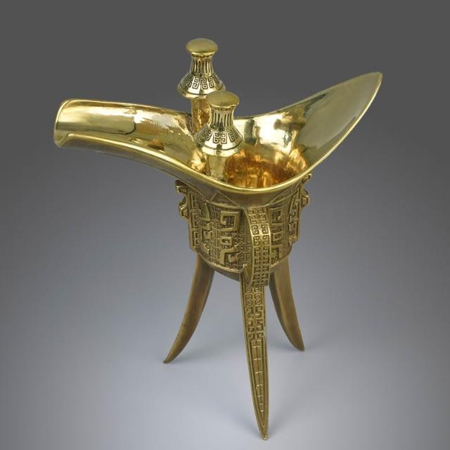 全銅酒杯擺件復古酒樽家用古代三足黃銅爵杯帝王酒樽酒鼎杯銅酒具