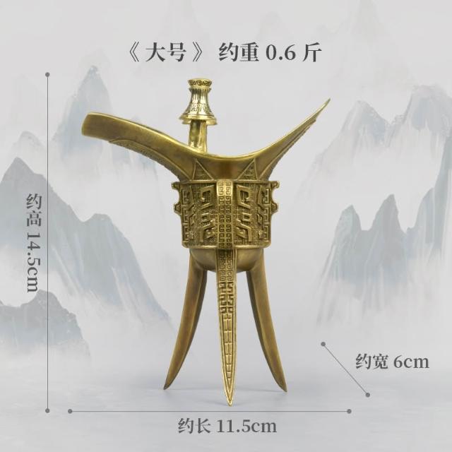 全銅酒杯擺件復古酒樽家用古代三足黃銅爵杯帝王酒樽酒鼎杯銅酒具