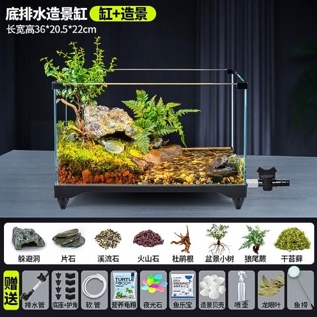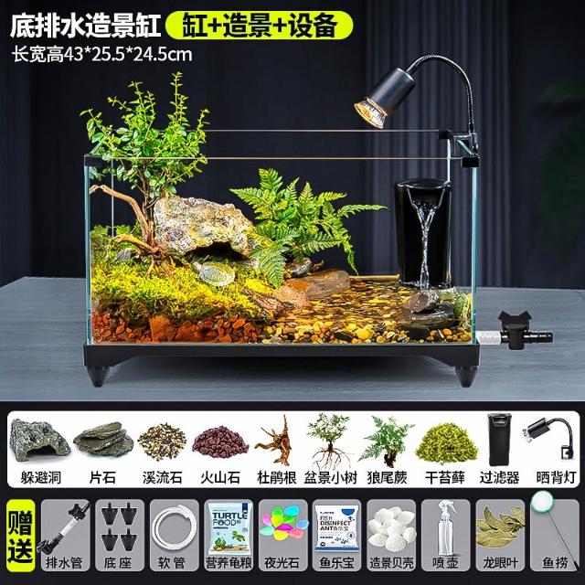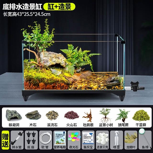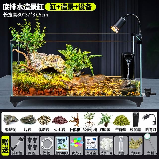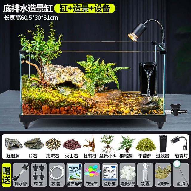 烏龜缸超白玻璃造景小別墅家用帶曬臺生態魚缸養大烏龜專用飼養箱