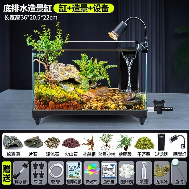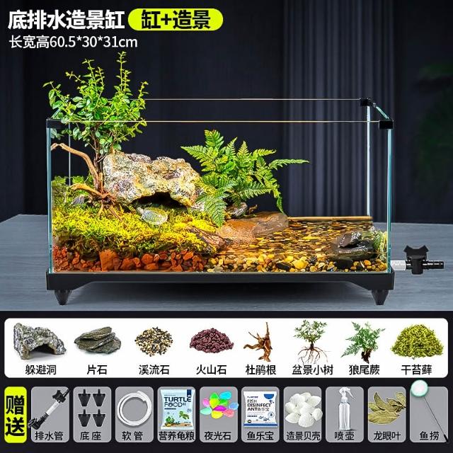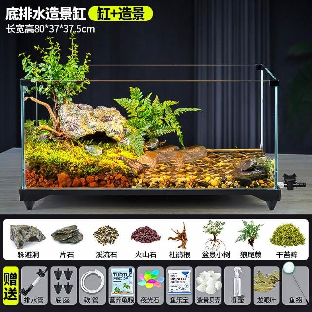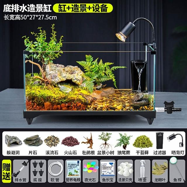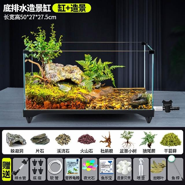 烏龜缸超白玻璃造景小別墅家用帶曬臺生態魚缸養大烏龜專用飼養箱