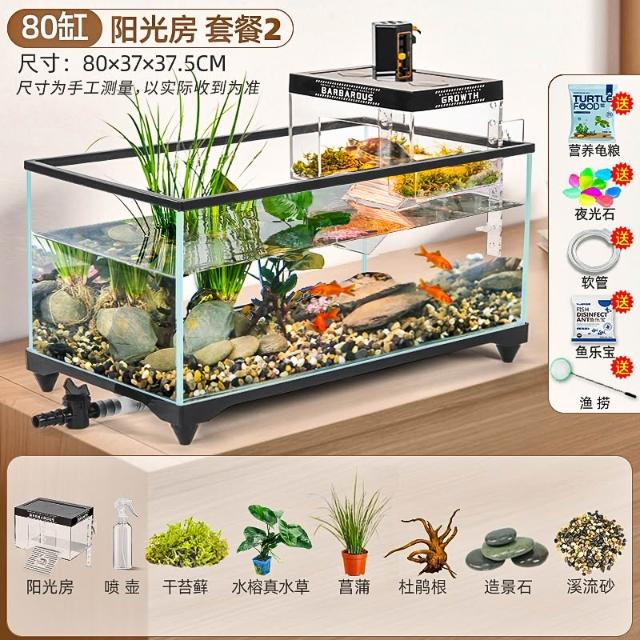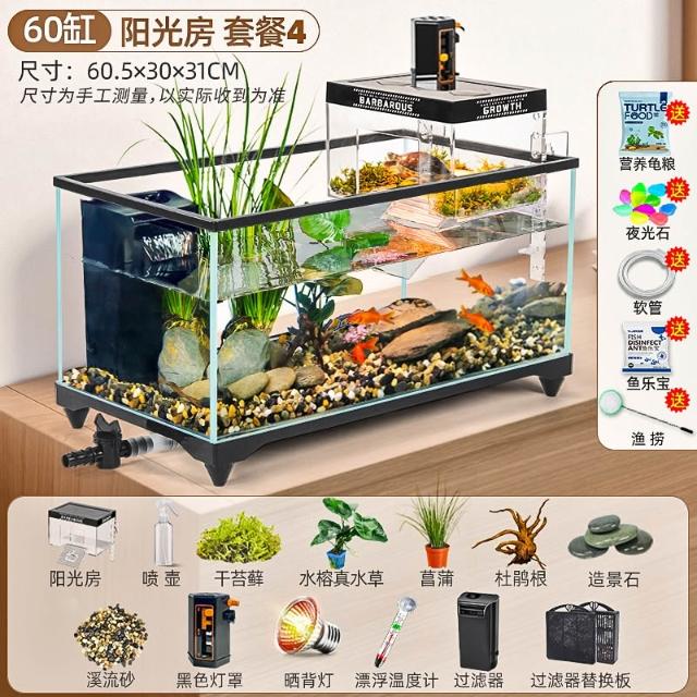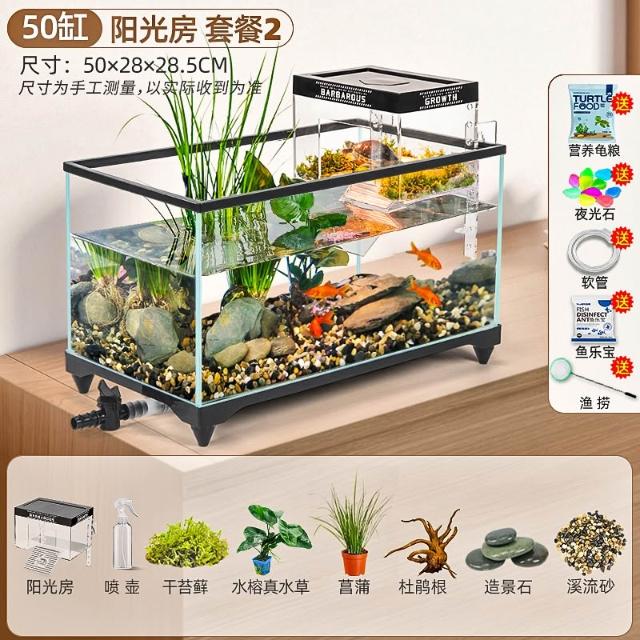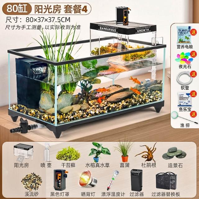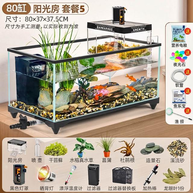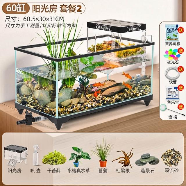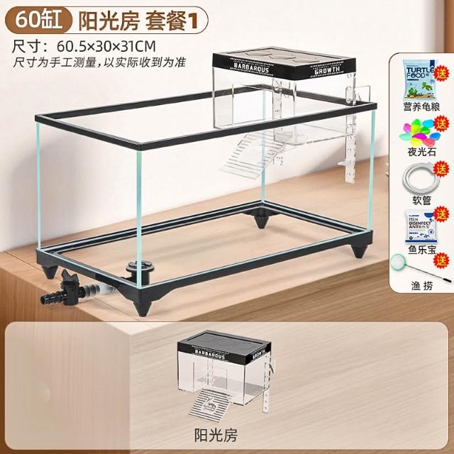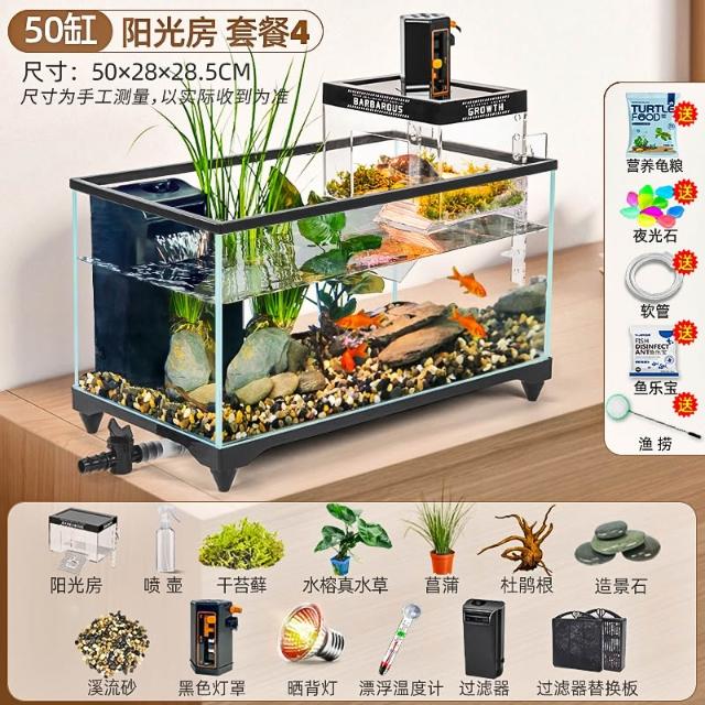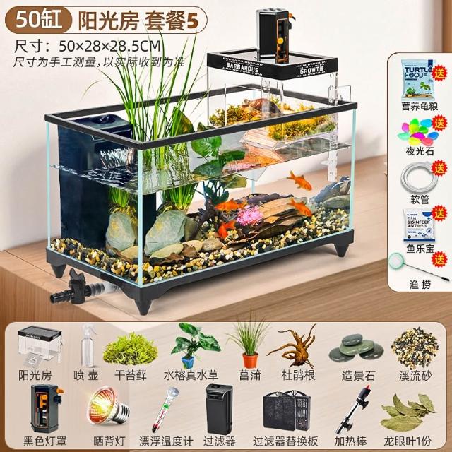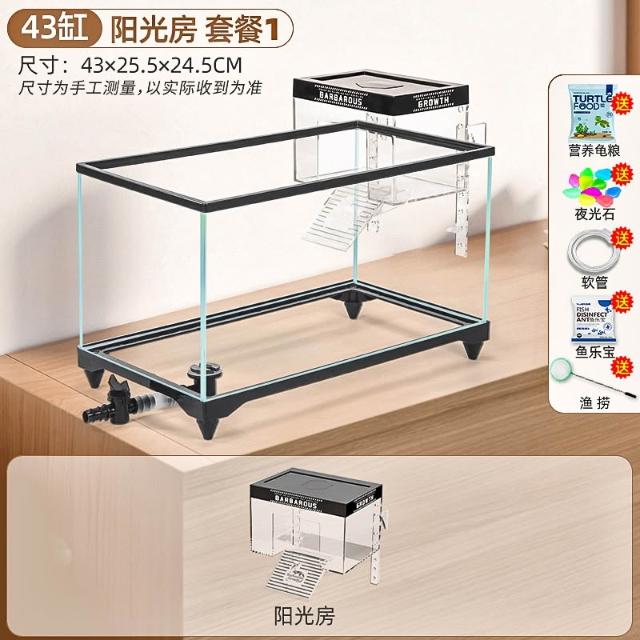 陽光房烏龜缸2025新款帶曬臺養飼養缸專用魚缸養龜箱別墅小型客廳