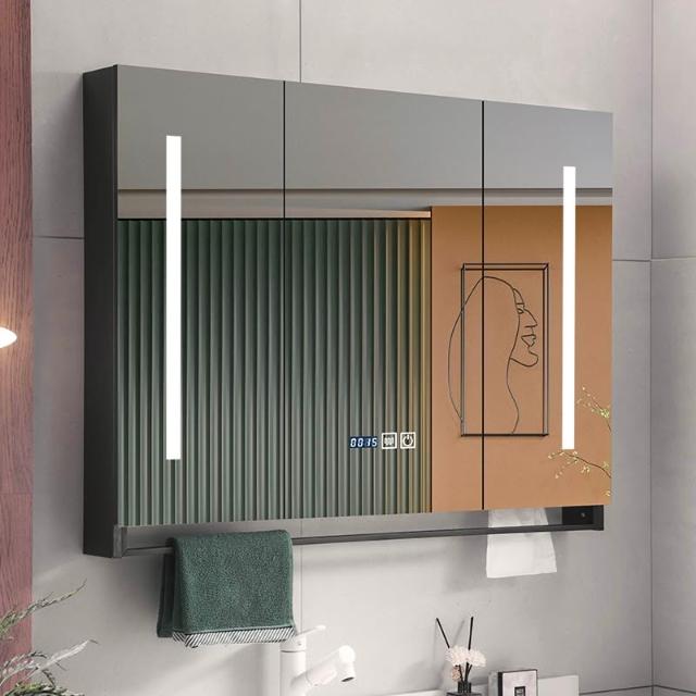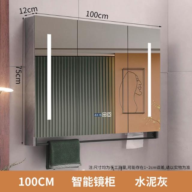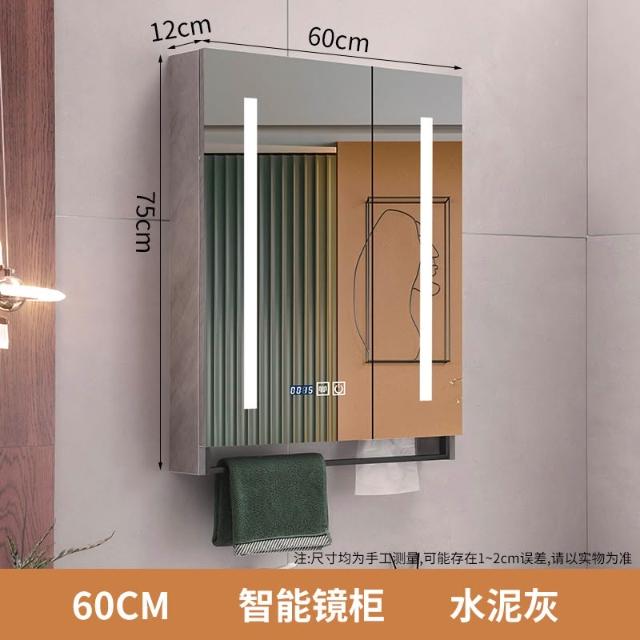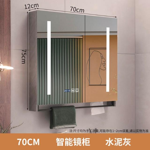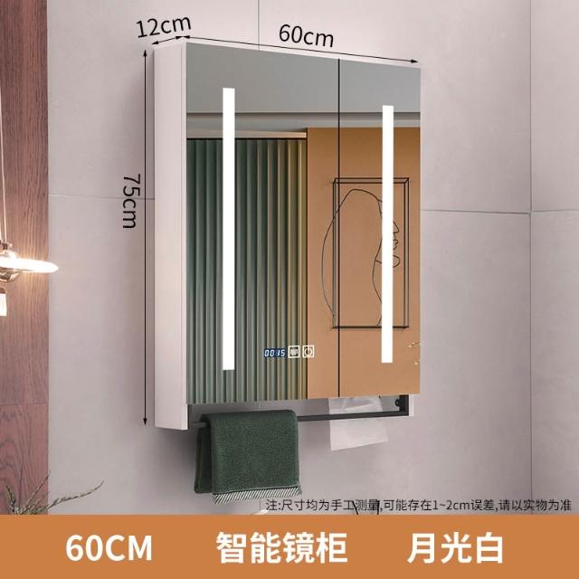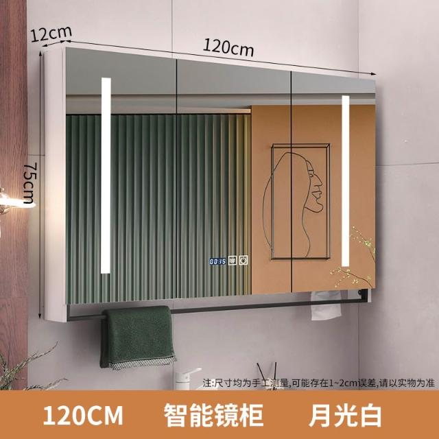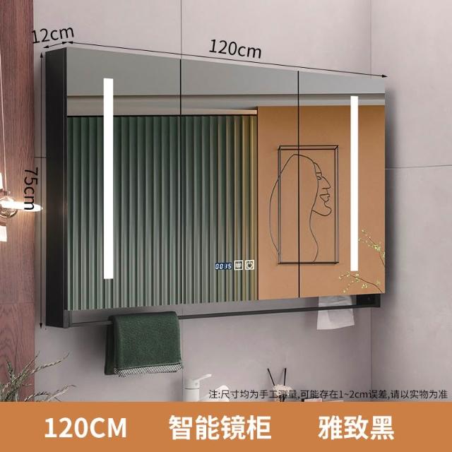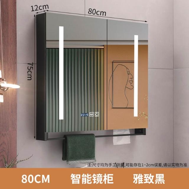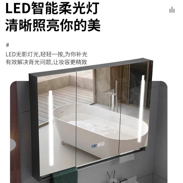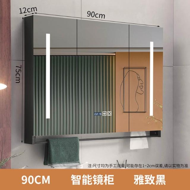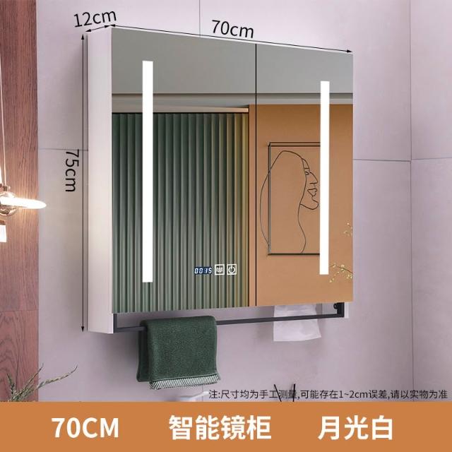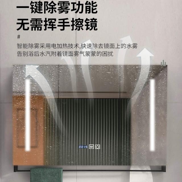 智能衛生間鏡櫃實木防霧鏡掛牆式浴室鏡帶置物架收納一體梳妝鏡櫃
