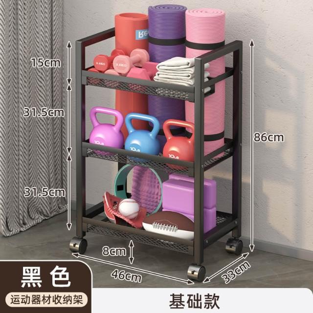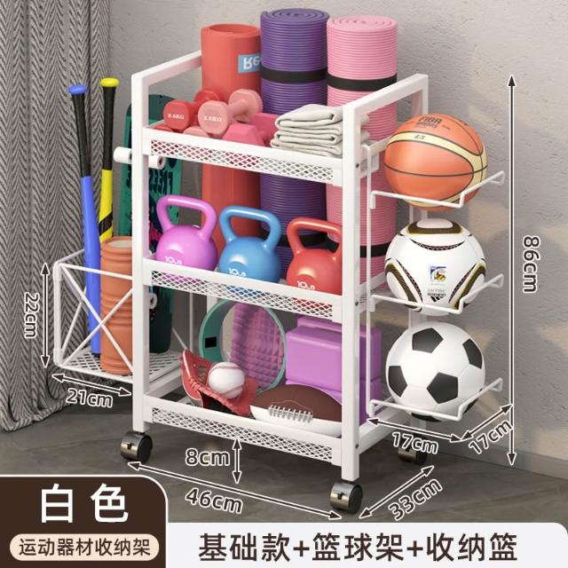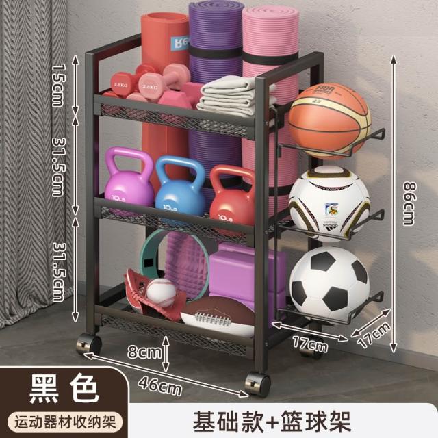 運動健身器材收納架家用籃球架壺鈴啞鈴架泡沫軸瑜伽墊置物架帶輪