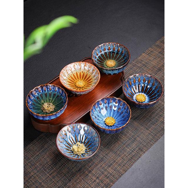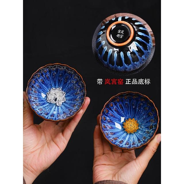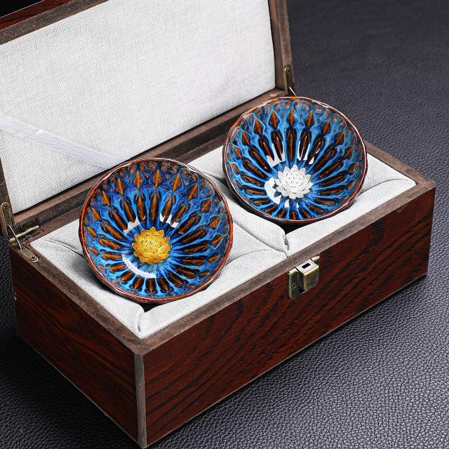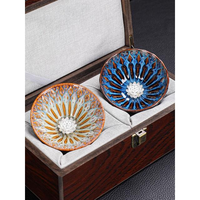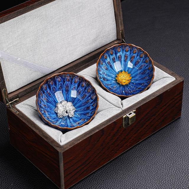 敦煌蓮花盞孔雀建盞主人杯對杯茶杯一對茶盞陶瓷禮盒裝高檔