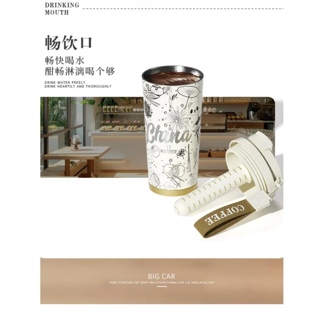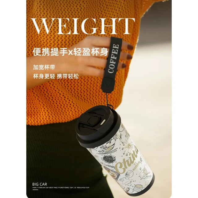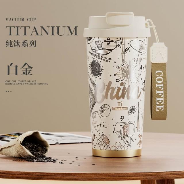 純鈦保溫杯大容量女士高顏值吸管水杯新款男生泡茶咖啡隨行鈦杯子
