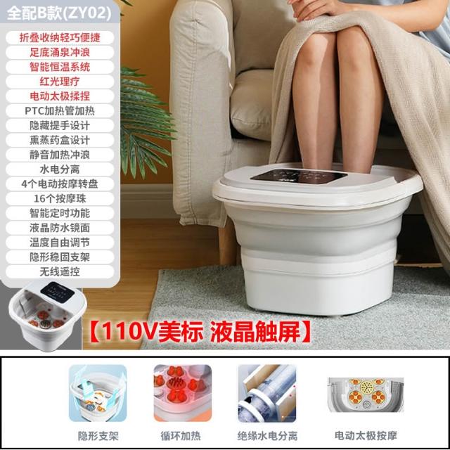 110V可折疊電動足浴盆自動加熱恒溫按摩洗腳桶泡腳桶家用保溫