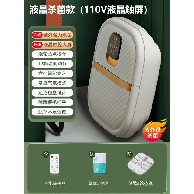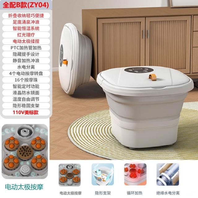110V伏可折疊電動足浴盆恒溫全自動加熱洗腳盆按摩泡腳桶