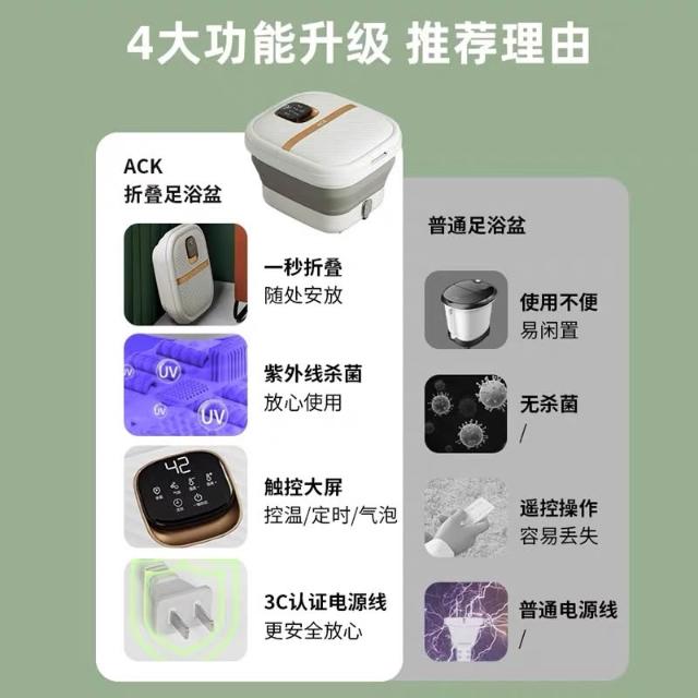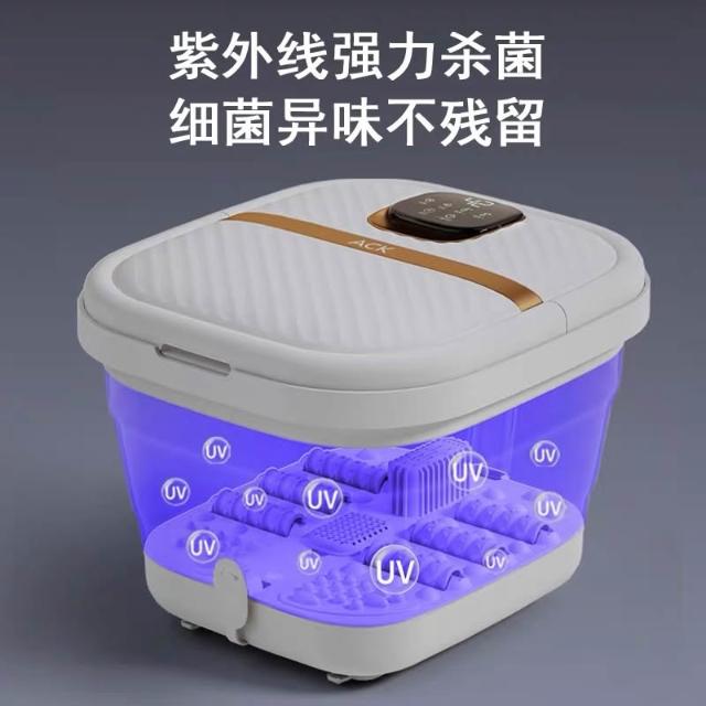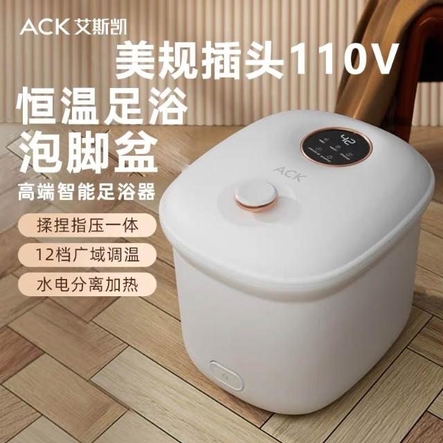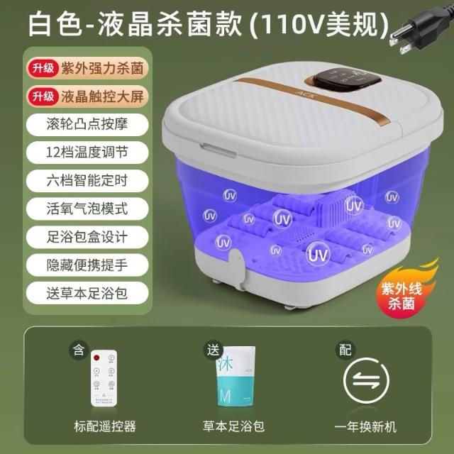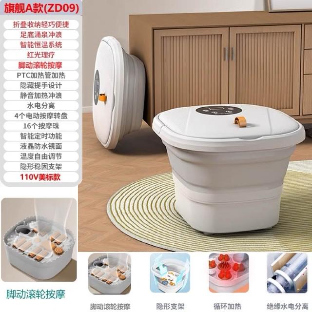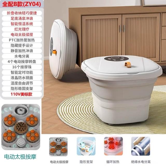 110V折疊足浴盆泡腳桶自動按摩家用電加熱恒溫臺灣
