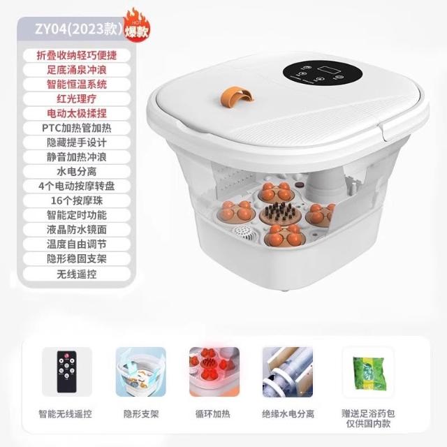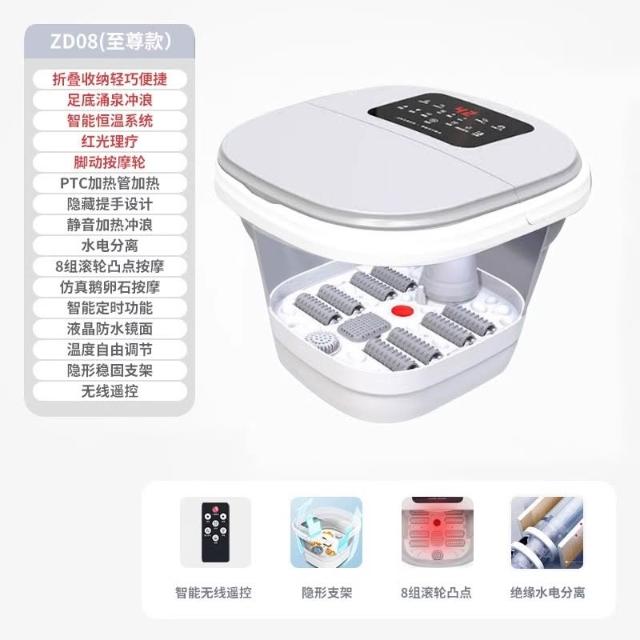 110V遙控可折疊電動足浴盆恒溫全自動加熱洗腳盆按摩泡腳桶