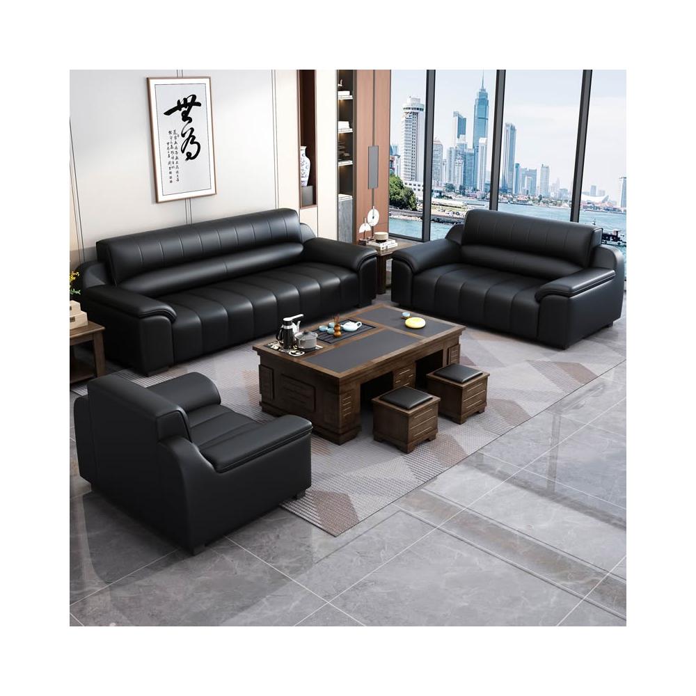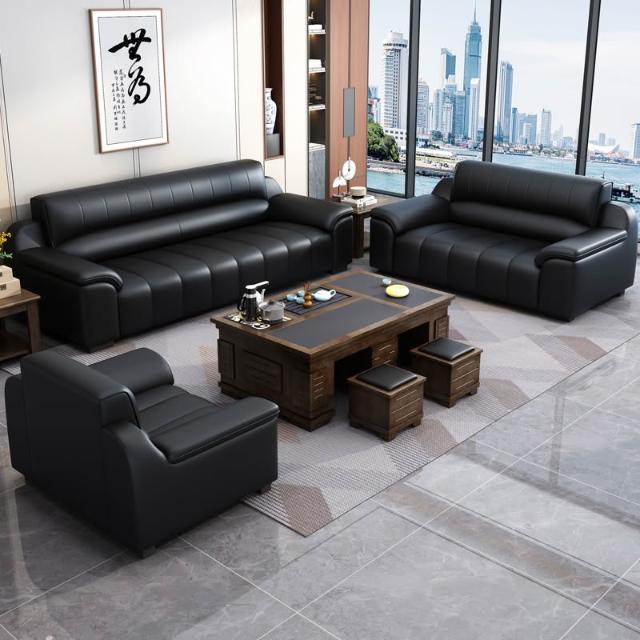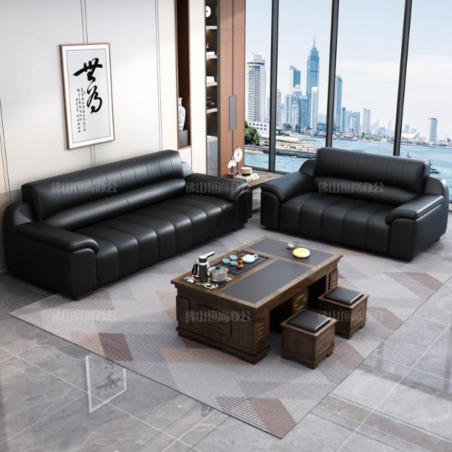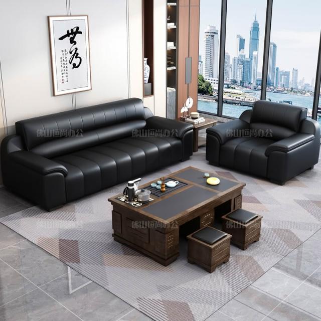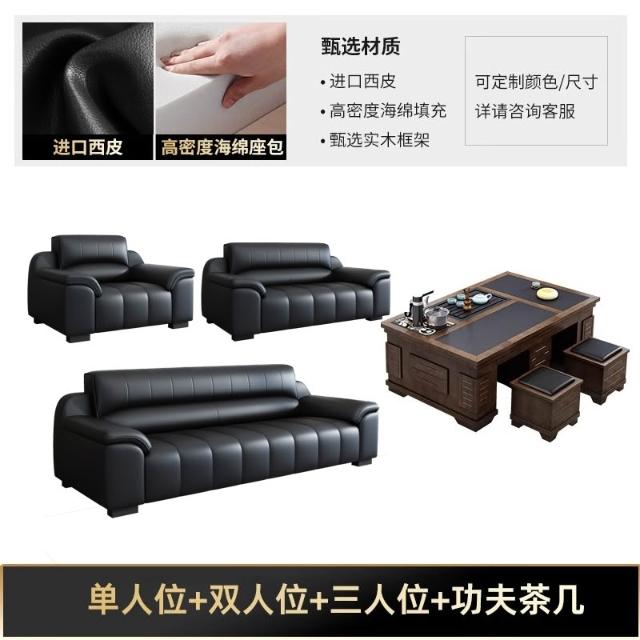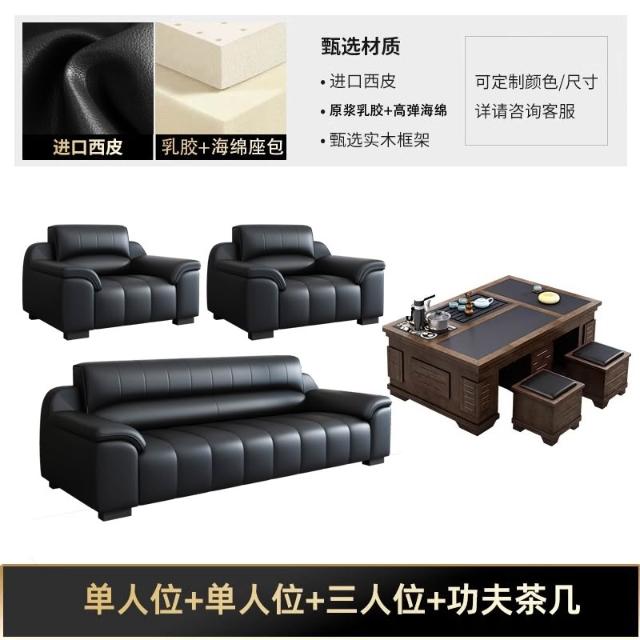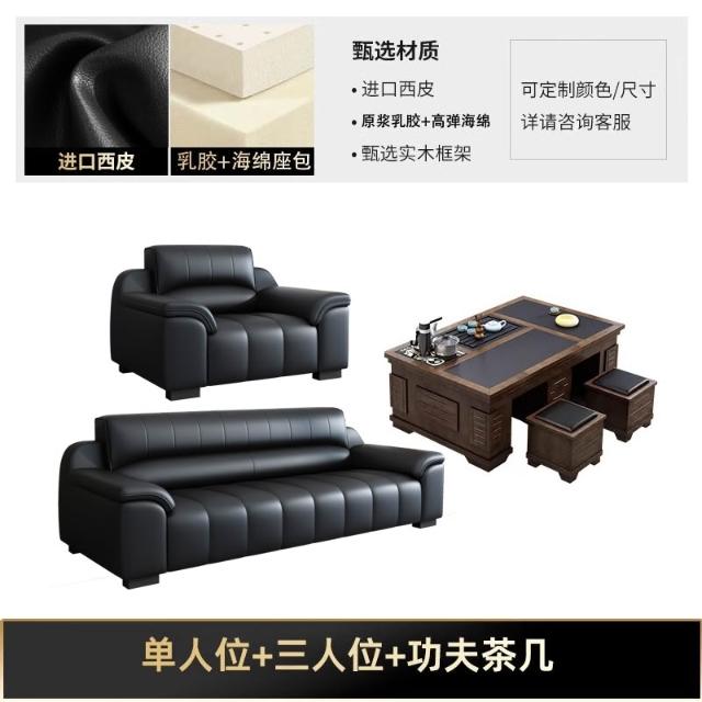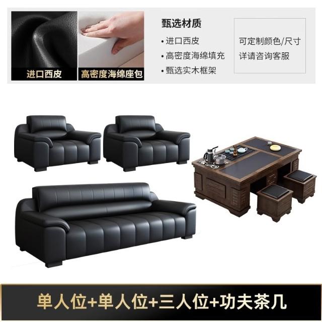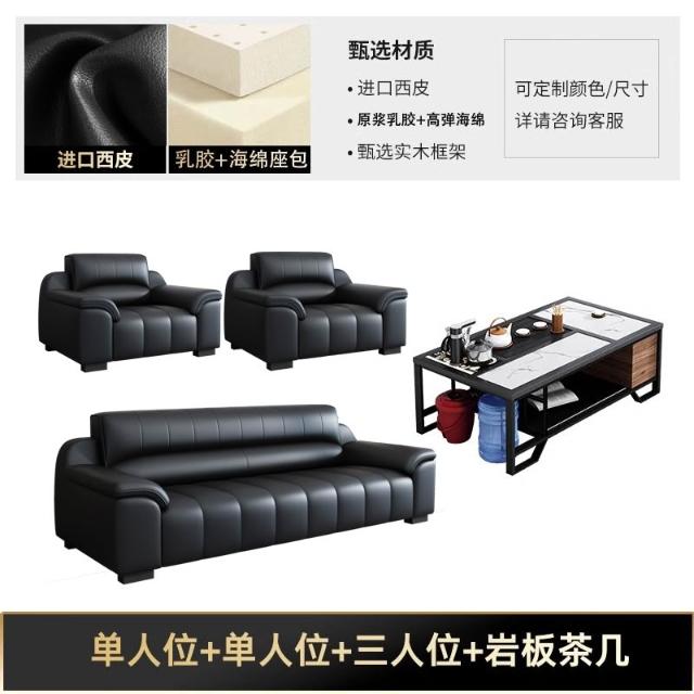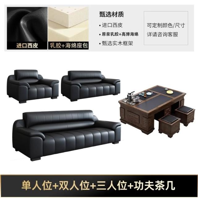 辦公室沙發新款真皮乳膠茶几組合接待室商務區會客室洽談簡約現代