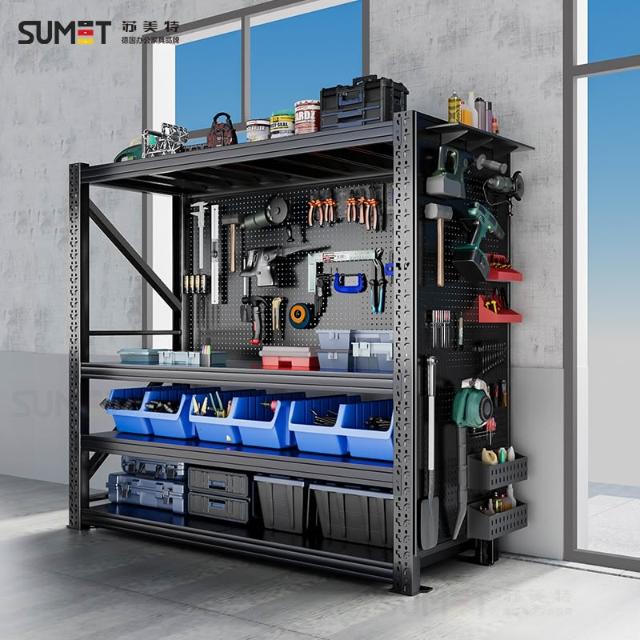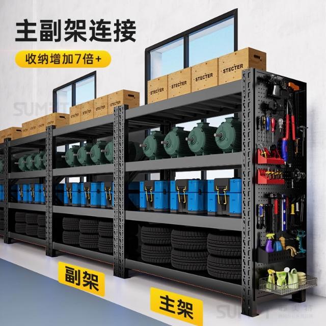 重型貨架倉庫置物架多層收納架帶洞洞板側面五金工具架放置儲物架