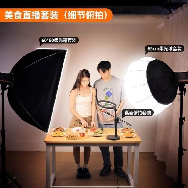 直播補光燈主播專用攝影燈專業直播間球形柔光燈攝影棚燈光設備全套網紅美顏拍照拍攝綠幕帶貨服裝圓形打光燈