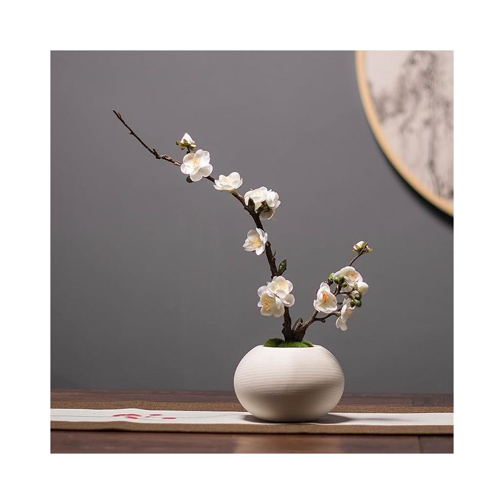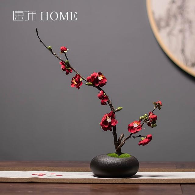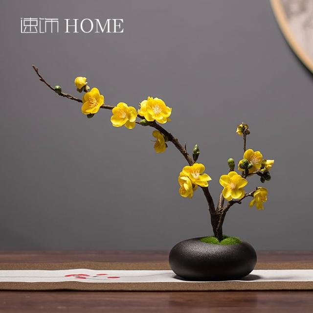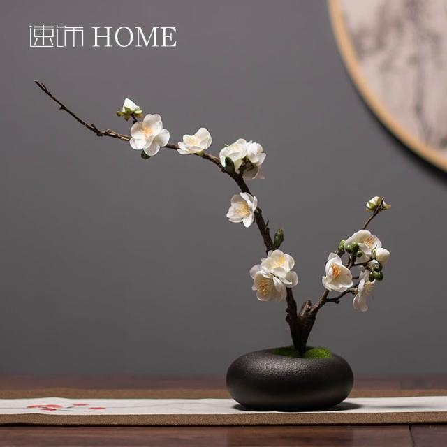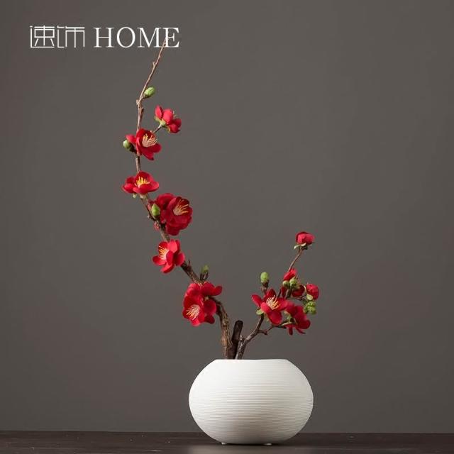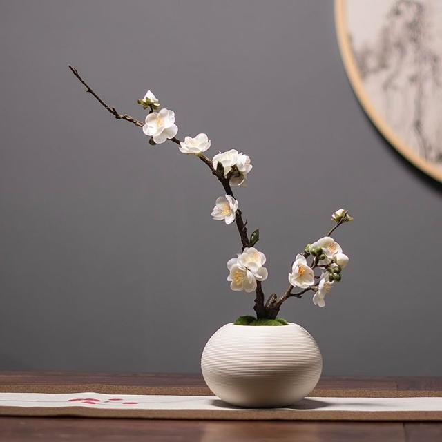 日式禪意白色陶瓷花瓶花藝套裝新中式客廳插花裝飾仿真臘梅花擺件